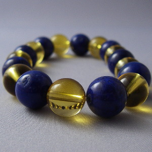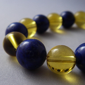 ラピスラズリ(瑠璃石)とシトリン(黄水晶)の念珠ブレス