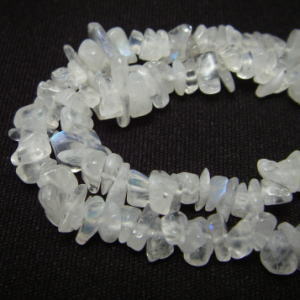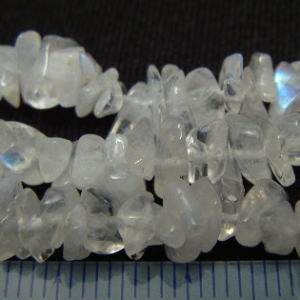 | 価格:280円/約10cm分、2000円/1連約90cm 形状:サザレ 参考サイズ:約2〜8mm×幅約1〜5mm 穴:石のほぼ中心を貫通しています(写真参照) 穴の大きさ:約0.5mm 色目は個々のサザレで異なりますが乳白色と透明な色がございます。 月光に似た青白い光を帯びております。 ※インクルージョン(内包物)がございます。 |
