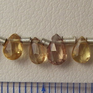 | 価格:1500円/5個分、12000円/連(約50個) 形状:フラットドロップ 参考サイズ:縦約4〜6mm×横約3〜4mm×厚さ約1〜2mm 穴:石の上部を横にを貫通しています(写真参照) ※サイズが小さい為、荒いカットとなっております。 ※手加工の為、サイズ、形にばらつきがございます。 色は赤、ピンク、黄、青、白等があり、どの色も透明な色合いです。 インクルージョン(内包物)がわずかにある石もございます。 色のご希望がございましたら直接お問い合わせ下さい。 |