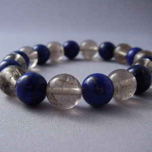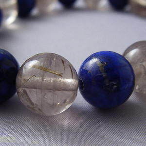 ラピスラズリ(瑠璃石)と金ルチルの念珠ブレス #m06001