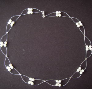商品の説明:4つの淡水パールが10箇所、ワイヤーによってネックレスを作成しております。